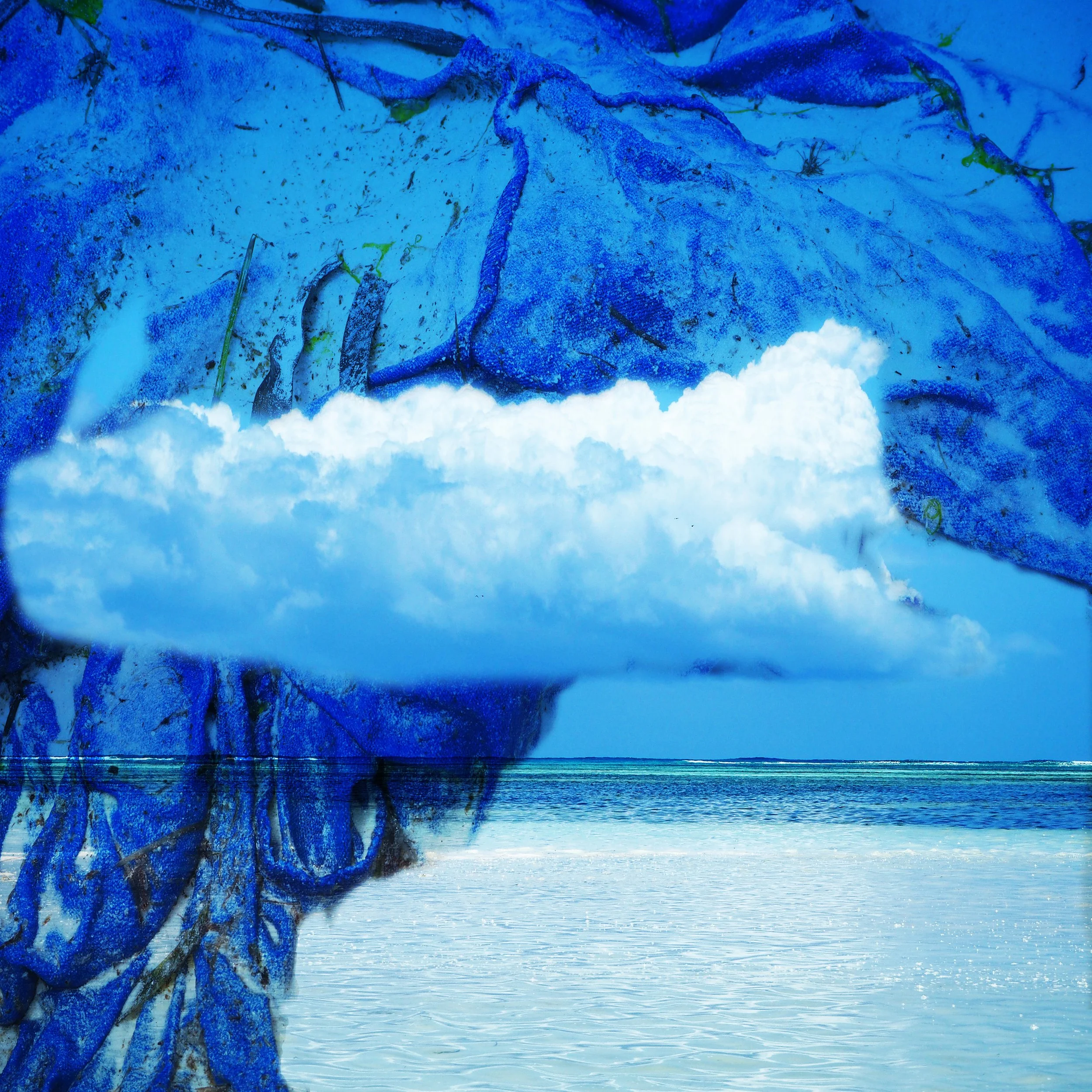 Exposition collective à la Galerie Corot à Paris XVI dans le cadre des journées nationales des artistes organisées par la Maison des Artistes. Tableau “Pollution bleue” extrait de la série “Polluant-Pollué : Warning!”. Une invitation à la réflexion sur la pollution des mers provoquée en partie par l’invasion des déchets textiles.